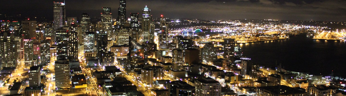 These are both of Seattle Washington; taken from the top of the Space Needle (one of Seattle’s landmarks…click on the link to find out more). They have a rotating restaurant up there, which we were not able to eat at ($$$).